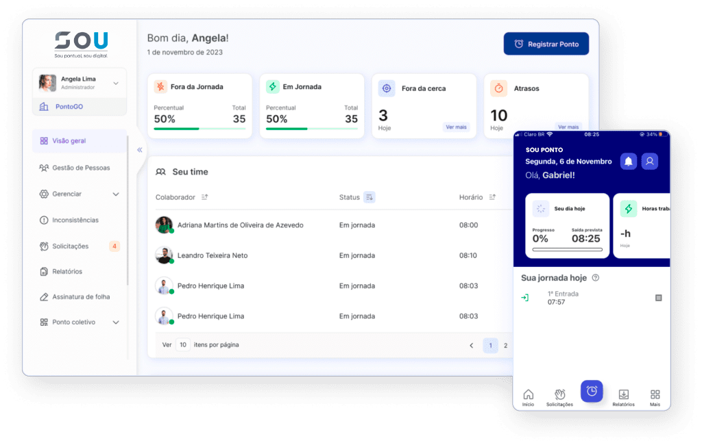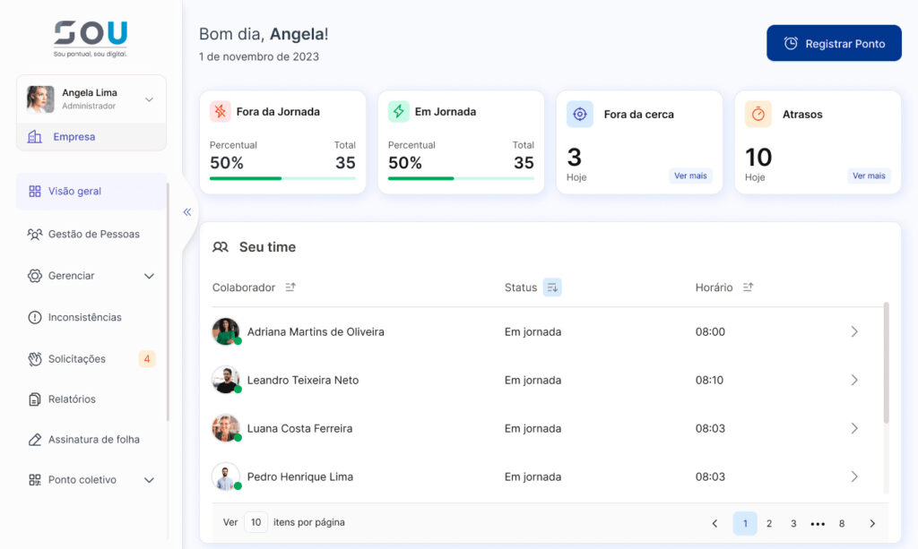 Gerencie os registros da sua equipe em tempo real com a SOU.